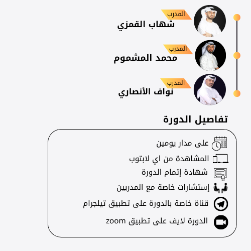 ✔ نجمع بين خبرات 3 مدربين في خطة واحدة متكاملة